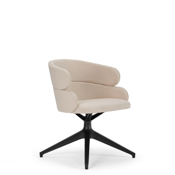 Base giratória: Polipropileno preto ou branco ou alumínio com acabamento polido. 4 raios piramidal.