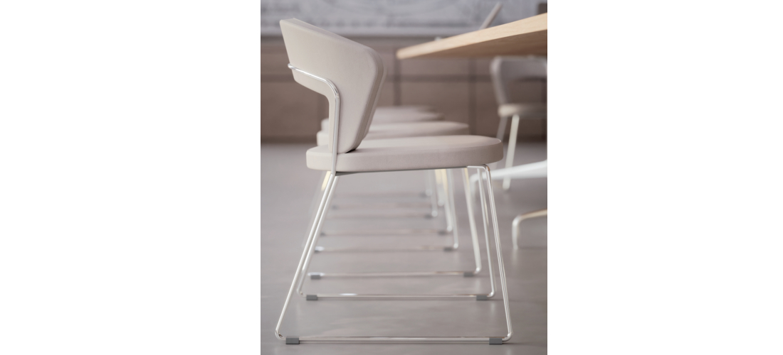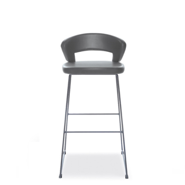 Estrutura banco alto: Varão de aço com acabamento cromado. Formato trenó.