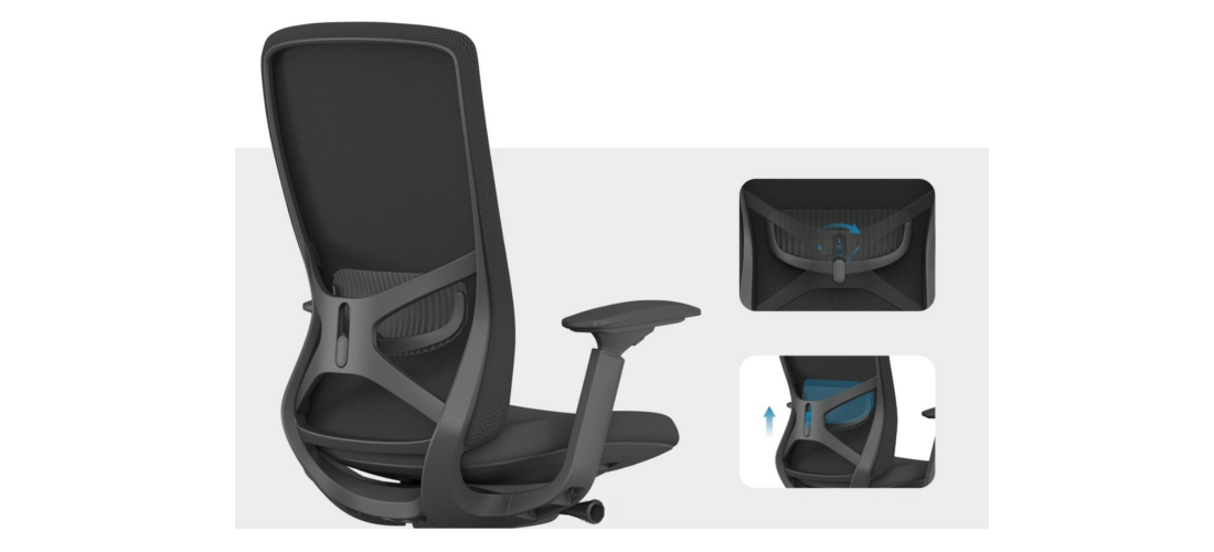 Costa: Alta. Rede. Suporte lombar regulável em altura e profundidade.