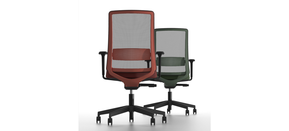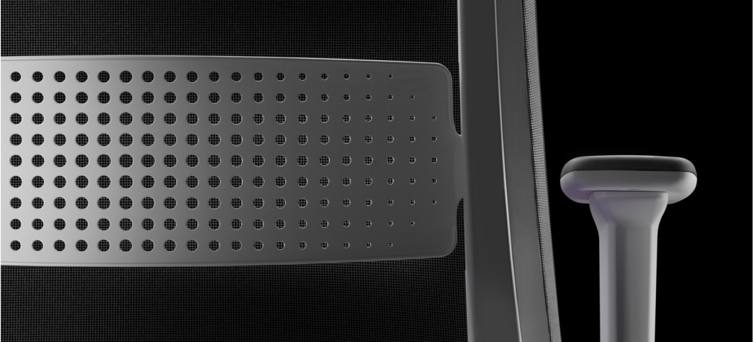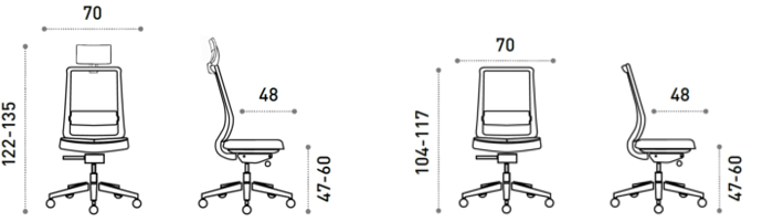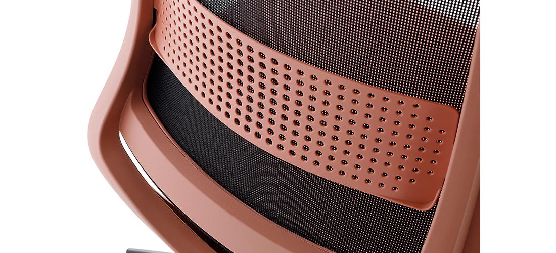 Costa: Rede. Suporte lombar regulável em altura. Cabide traseiro em polipropileno (opcional).