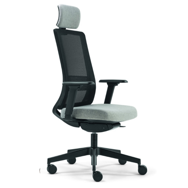 Apoio de cabeça (opcional): Frontalmente revestido. Regulável em altura e inclinação.